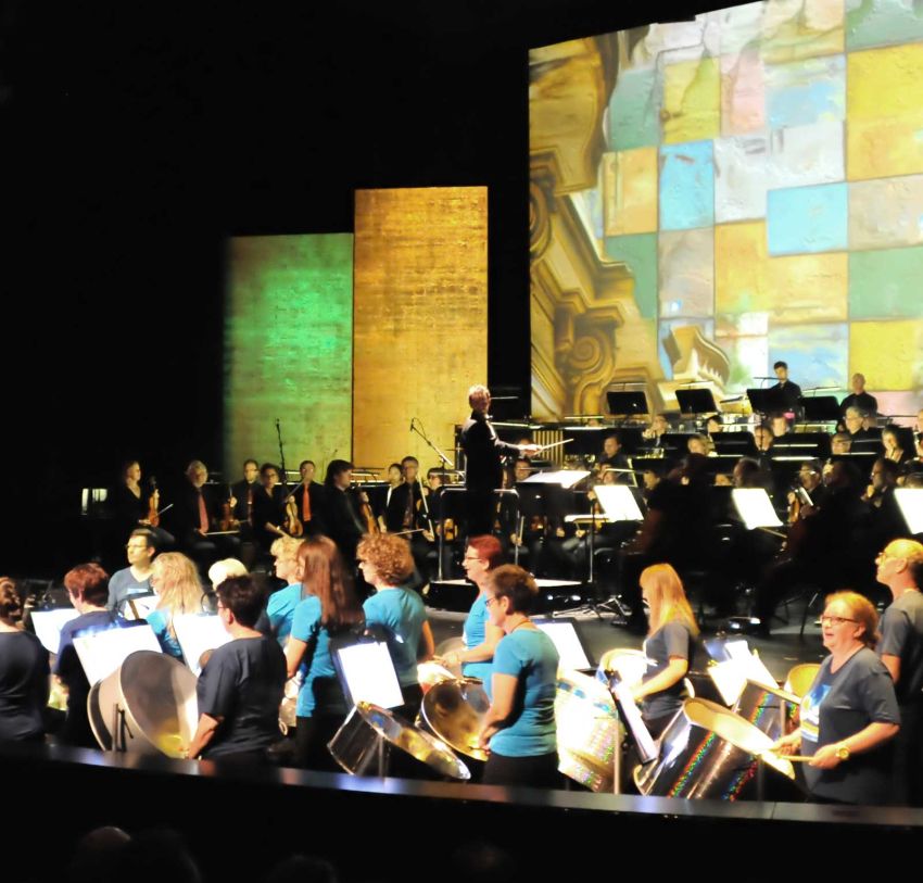 Das Erlebnis des vollen, satten Klangs eines klassisch besetzten Steeldrum-Orchesters. Es klingt aufgrund seines enormen Tonumfangs und seiner vielfältigen Klangschattierungen einfach unvergleichlich und ist auch optisch beeindruckend. Gespielt wird mit Sechser- und Vierer-Bass (jeweils sechs, bzw. vier Ölfässer), Double- und Triple Bariton, Double Tenor, Double Alto, Big Mama und Soprano. BÄNG BÄNG, das Orchester, spielt je nach Anlass in einer Besetzung von 15 bis 30 Spieler/innen. Für Auftritte wird eine Bühne ab 40 Quadratmetern benötigt. Eine technische Verstärkung ist grundsätzlich nicht nötig, bei einer großen Zuschauermenge und unter offenem Himmel allerdings sinnvoll.